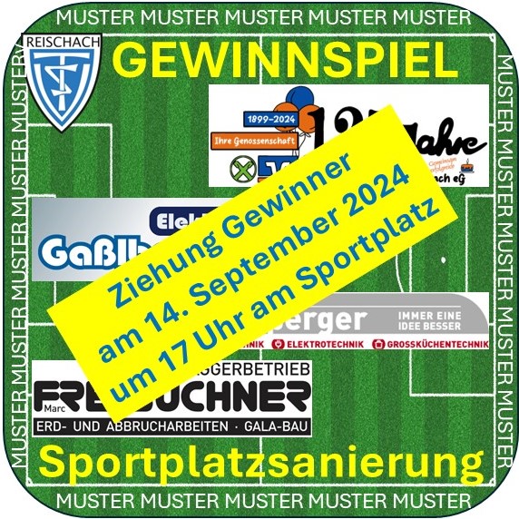 Die Verlosung der Preise für das Gewinnspiel zur Sportplatzsanierung findet am 14. September 2024 um 17 Uhr am Sportplatz statt.